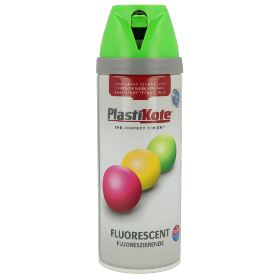 PlastiKote Fluorescent spray paint is perfect for adding a dazzlingly bright finish to photo frames, furniture, decorative objects and more. With brilliant colour payoff, this paint is also great for safety applications – mark trip hazards or spots where you could bump your head.