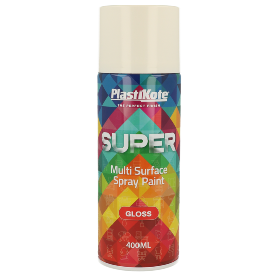 PlastiKote Super Spray Paint is simply the finest multi-purpose spray paint available. Super comes in a range of finishes to suit your chosen application. It is tough, hard wearing and resistant to scratches. Super Spray Paint is very UV absorbent, water resistant, and will not fade or yellow, it protects against rust and is fast drying. It comes in gloss, matt and satin finishes with the addition of 2 primers and a top coat, which is designed to provide a tough, transparent, flexible film that preserves and protects against weather.